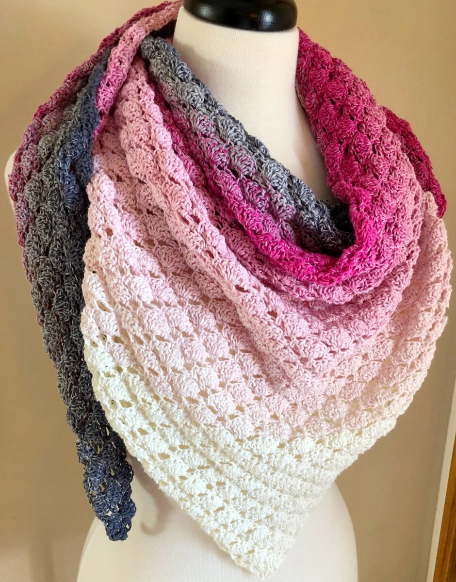 3. Красивая, воздушая шаль🥰. Классическая и многими любимая схема с веерами.