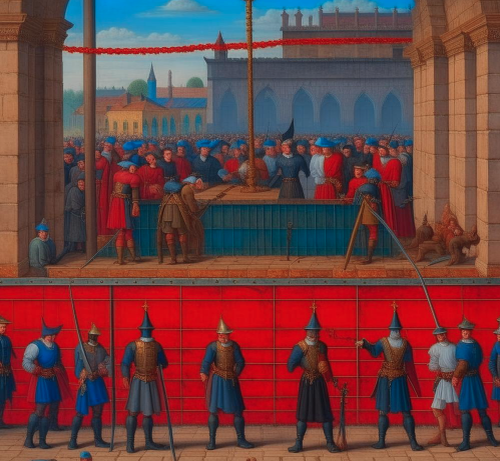 - Траурный кортеж прибыл вовремя, воспользовавшись своим правом на последнее слово, Жиль де Рэ, который по свидетельству очевидцев, сохранил полнейшее самообладание, обратился к слугам с короткой речью, советуя им мужаться, и помнить о том, что жизнь есть не более чем преддверие вечности. Вслед за тем, произнеся краткую молитву св. Иакову и св. Михаилу-архангелу, барон, в качестве милости, попросил для себя возможности первым принять смерть. Конечно же, эта просьба была исполнена.