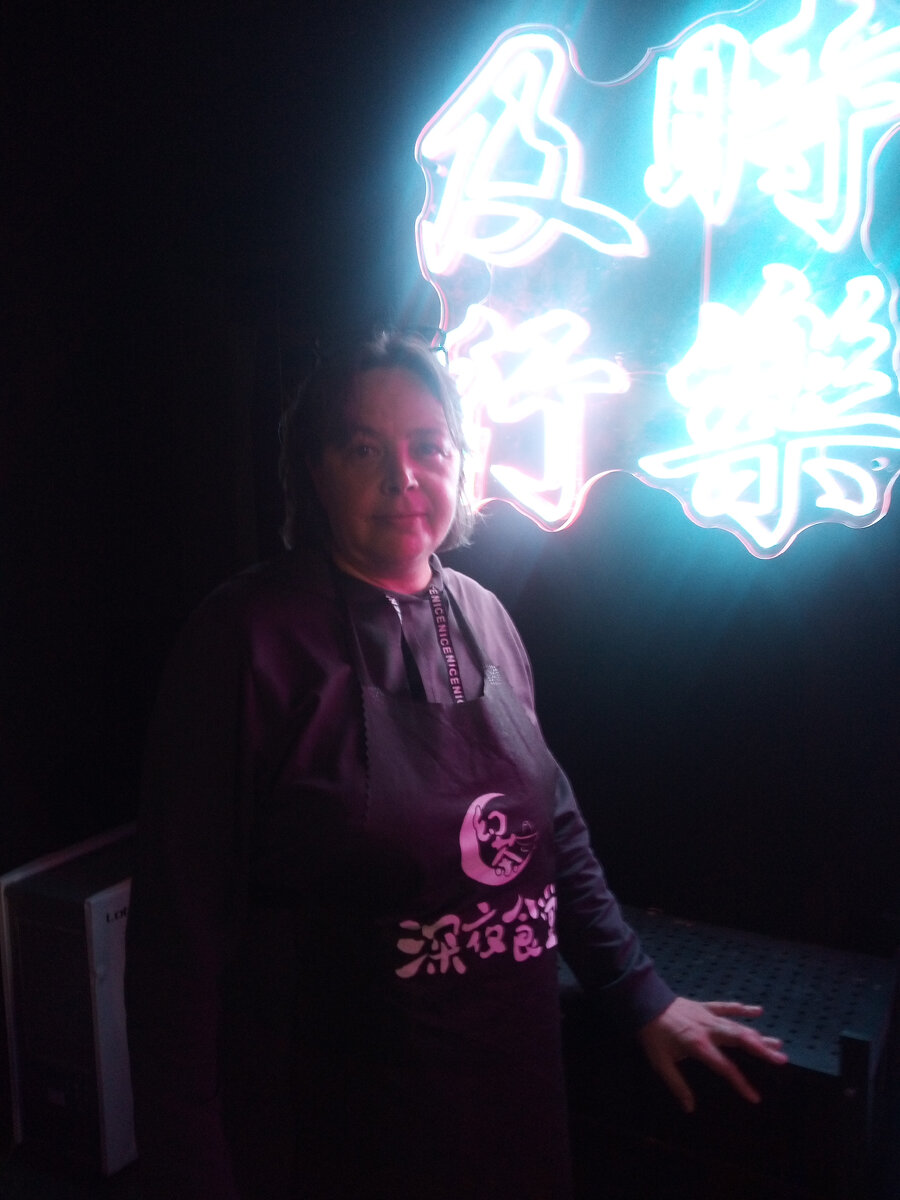 Сын позавчера, идя от врача, обнаружил прекрасное место - вывеска на английском, а внутри китайские иероглифы видны. Пригласил даму и они пришли на разведку боем. Оказался чудесный хозяин китаец Хуан, ни слова ни на каком языке кроме китайского, но общительный. На каждом столике переносной гриль. Сам выбираешь ингредиенты - креветки, мясо разных сортов, щупальца кальмара... и жаришь на гриле до готовности по твоему вкусу. К столу приносят зелень - салат, огурцы. Зелёный чай прямо из Китая, я их теперь отличаю, стоило столько разных сортов испить. Бару нет ещё двух месяцев, поэтому народа мало, для общения и насыщения самое то. Музыку можно ставить самим любую. Я много перевидела и перепробовала китайской кухни и в Китае, и в Тайланде, и в Москве. Эту рекомендую - продукты свежие, соусы и приправы аутентичные, остальное каждый сам себе повар.