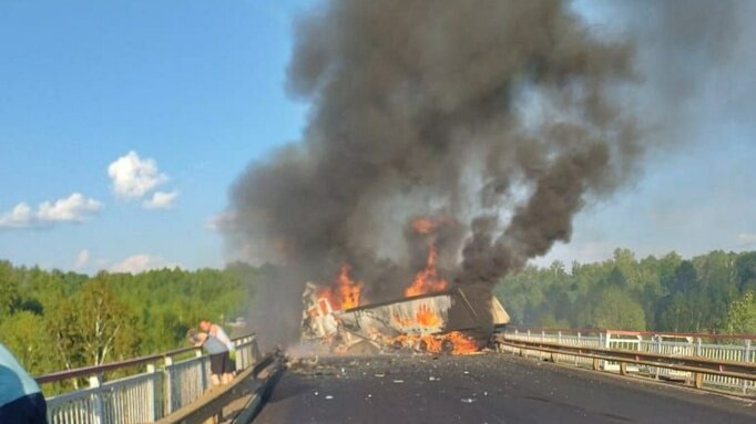 В результате ДТП загорелись обе машины Два человека погибли при столкновении двух грузовиков в Залесовском районе Алтайского края, сообщили в местной администрации. Авария случилась 5 августа на трассе Алтай – Кузбасс в районе села Пещерка. От удара произошел разлив топлива, в результате чего одна из машин загорелась. "Два человека погибли, есть пострадавшие", – отметили в пресс-службе. Кадры: "Инцидент Барнаул" В телеграм-канале "Инцидент Барнаул" со ссылкой на краевое МВД рассказали, что столкновение было лобовым. Предположительно, погибли оба водителя. На кадрах с места ЧП видно, что одна их горящих фур полностью перекрыла проезжую часть. Другая – вылетела с моста. Движение на участке оказалось полностью перекрыто. Больше материалов на amic.ru.