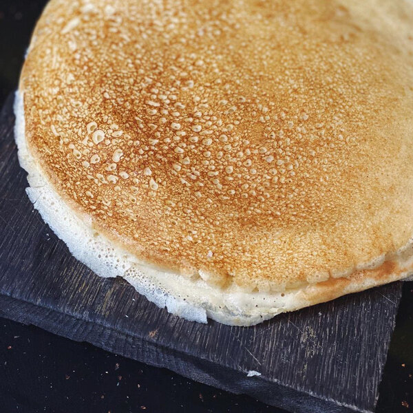 Чтобы пожарить блины на сковороде, смешайте ингредиенты в таком порядке: По консистенции смесь получится как густая сметана. В неё нужно аккуратно влить 0,5 литра молока и две столовые ложки воды, взбивая миксером на малых оборотах. Важно, чтобы молока в тесте на блины было ровно столько, сколько нужно. Если его будет много, блинчики порвутся, мало — выйдут толстоватыми. Жарить блины по бабушкиному рецепту следует на хорошо разогретой сковороде, смазанной топлёным маслом. Им же нужно промазывать и сами изделия. Тонкие ажурные блины на ряженке Чтобы блины получились тонкие и ажурные, жарить их нужно на совершенно сухой сковородке. Подготовьте следующие ингредиенты: Разбейте яйцо в глубокую миску, добавьте сахар и соль, взбейте венчиком или блендером. Влейте ряженку, всыпьте соду. Затем просейте в смесь муку — делайте это аккуратно, так, чтобы не образовалось комочков. Затем влейте кипяток и хорошо смешайте все составляющие теста. Строго соблюдайте очерёдность и хорошенько всё перемешива