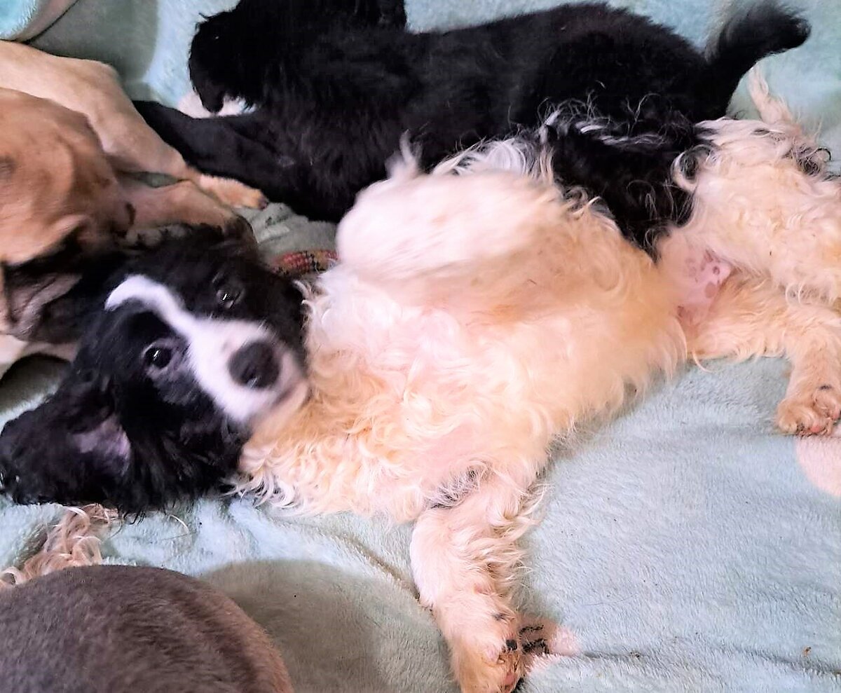 Напомню, спаниелей выбросили в степь на окраине Астрахани. Факт даже удалось снять на видео. Это видео разместили в зоозащитной группе, мы увидели и щенков забрали. Дети выросли. Об этом можно прочитать по ссылке: Жучку я подобрала в числе прочих щенков на другой окраине города, на обочине федеральной трассы. Кто-то "заботливо" насыпал месячным малышам фасоль и поехал дальше. Я мимо проехать не смогла. Щенков забрала, около двух месяцев пыталась спасти - фасоль набухла и причинила много вреда малышам. Самых тяжелых забрали друзья-волонтеры в Москву, там двоих пристроили, еще двоих оставили себе после нескольких операций на кишечнике. Жучка осталась у нас,
