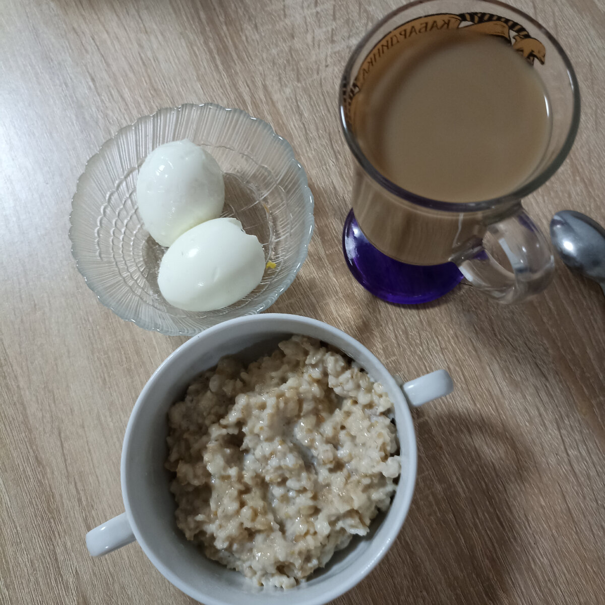 Геркулес на молоке и с домашним сливочным масло,, два яйца и кофе с молоком🤗Всем хорошего дня!
