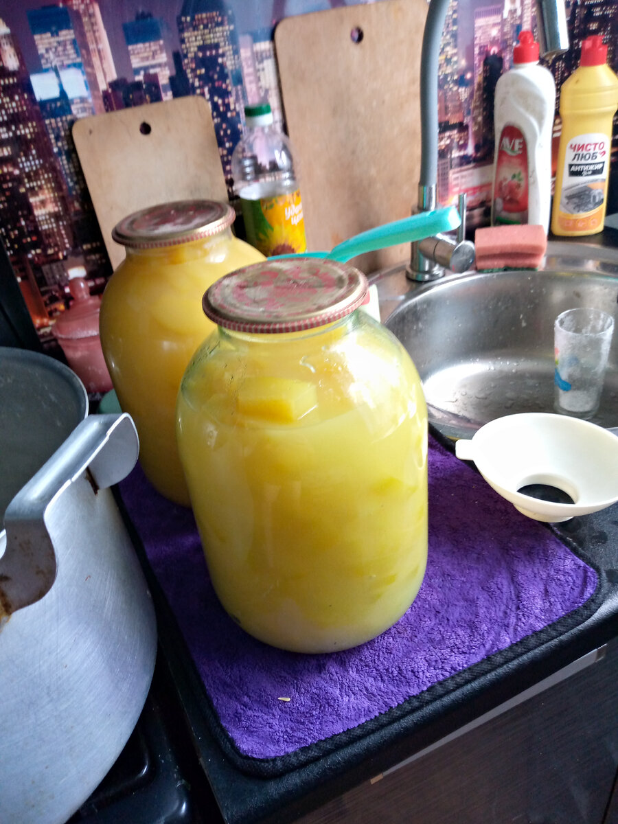 Привет 🤗 Давно не делилась с вами своими проверенными , но простыми рецептами . А сейчас вот появилась свободная минутка , пока гуляем с дочками. Благо фото есть в телефоне. Вчера занималась закрутками . Огурчики сладкие и простого посола. Ну и конечно наши любимые ананасы из кабачков Этот рецепт ещё из моего детства. Мама варила и варенье из кабачков, и компот, и варенье из тыквы Ну и вот такие а-ля ананасы. Ну так вот Берём самые смелые кабачки. Очищаем от кожуры и мякоти. Режем произвольно, как хотите. Но лучше не очень крупно Набираем хорошенько банку. Заливаем холодной водой и выливаем столовую ложку эссенции. Накрывает крышкой и на сутки в холодильник Достали. Воду слили. Залили чистой водой. Смотрите, чтобы вода заполнила все свободное место. Снова слили воду в кастрюлю. Поставили воду на огонь. Как вода закипела, добавили в нее из расчета на 3-литровую банку 2 стакана сахара и 2 пакетика юппи со вкусом ананаса. Варить 20-30 минут. Потом разливаем все по банкам. Закатали,