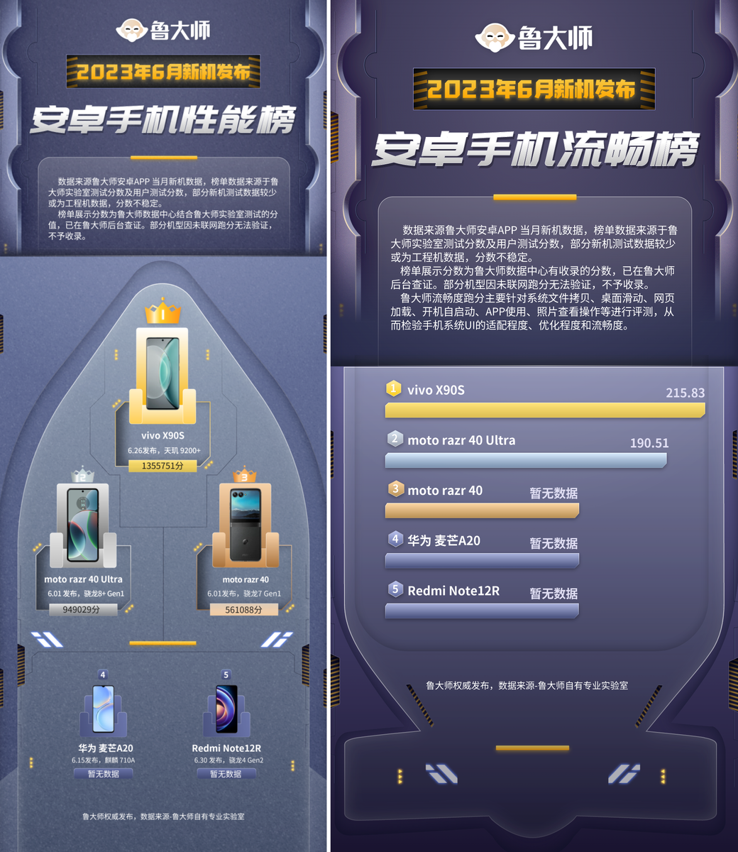 Следом за AnTuTu свой рейтинг самых производительных Android-смартфонов выпустили и разработчики бенчмарка Master Lu. Правда, они оценили не только чистую производительность, но и плавность пользовательского интерфейса. По версии Master Lu, самым мощным Android-смартфоном на данный момент является OPPO Find X6 Pro. С минимальным отрывом на втором и третьем местах расположились новые Meizu 20 Pro и Meizu 20. Весь же рейтинг выглядит следующим образом: Не совсем понятно, как составлялся этот рейтинг, поскольку в нём нет многих моделей на базе топового чипа Snapdragon 8 Gen 2, но зато есть новинки HUAWEI с прошлогодним Snapdragon 8+ Gen 1, OnePlus Ace 2V с прошлогодним MediaTek Dimensity 9000 и даже модель среднего уровня Redmi Note 12 Turbo на базе Snapdragon 7+ Gen 2 и с не самой быстрой памятью UFS 3.1, но не лучший по всем параметрам Xiaomi 13. Что же касается рейтинга плавности пользовательских интерфейсов, то в этой категории лидерство досталось Meizu 20 Pro. Второе место занял OP