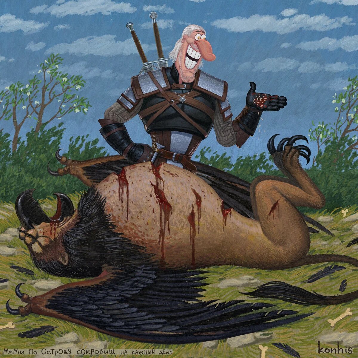 Я уже писала о художнике, который создал неповторимое сочетание Геральта из Ривии и Доктора Ливси из Острова сокровищ:
