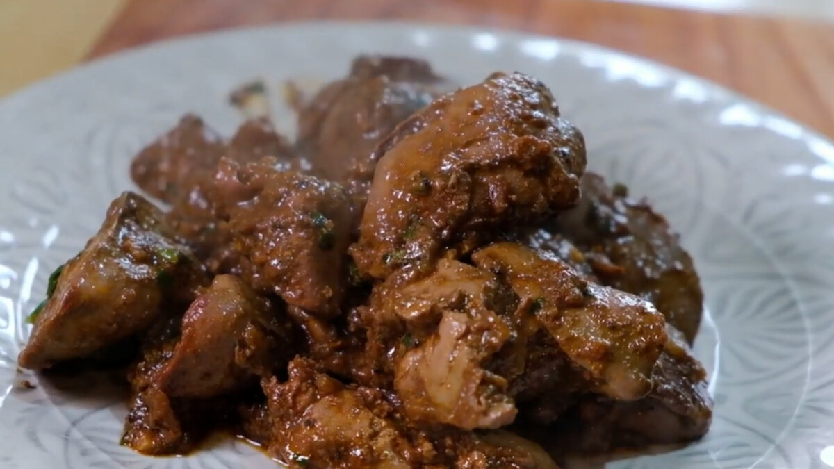 Самая нежная и практически не имеющая горьковатого привкуса куриная печень. Всем привет! Печень — очень полезный продукт для организма человека. Он богат железом, чтобы дать нам энергию и витаминами группы В, в первую очередь В12, а также различными микроэлементами, что делает блюда из печени хорошим выбором для всех, кто следит за своим здоровьем. Но не всем, блюда из печени придутся по вкусу, так как печень суховата и немного горчит. Куриная печень является лидером по содержанию микроэлемента цинка и витамина А, который отлично помогает здоровью глаз. Представленный рецепт из куриной печени, потрясающе вкусное и очень простое блюдо, которое готовится буквально за 20 минут. Он поможет вести в ваш рацион блюда из печени на регулярной основе. Готовка: Для приготовления вкусной куриной печени разогрейте масло и обжарьте крупно нарезанный лук. Затем добавьте нарезанный чеснок, нарезанный перец чили, нарезанные помидоры, бульонный кубик, паприку, соль, чёрный перец, воду и куриную печень.
