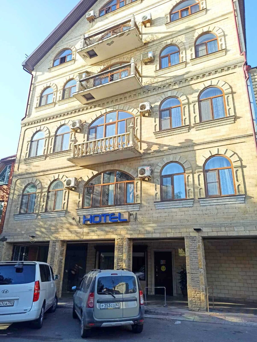 Теперь о гостинице. Гостиница "Центральная" корпус 2. Не путайте просто с Центральной, там цены очень не гуманные. Расположение - центр, но на тихой улочке. Ночью спали с открытыми окнами, море всё таки. Проснулась один раз, и то таксист привёз подвыпивших туристок, которые упорно флиртовали и намекали. Минус. Своей парковки нет. Но мы без проблем поставили машину недалеко от входа, а вечером перепарковали прямо перед оным. Минус второй. Лифта в отеле нет. Нас - не напрягало. Персонал. Вежливо, но...это не европейская часть России, здесь всё просто. Так что я бы сказала не минус, и не плюс. Оплата. В 2022 только наличные, хотя по Кавказу практически везде так. Для меня это минус.