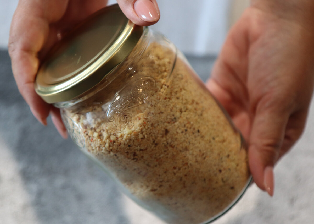 Арахис -основной ингредиент этой необычной добавки к еде. Довелось попробовать эту добавку мне в Китае. Там традиция подавать огромное количество различных соусов, закусочек, приправ к основным блюдам. Даже не совсем удачное мясо съедается с ней "на ура". Было время, когда я ее заказывала домой килограммами. Держала в морозилке. Испытала прелесть этой добавки, будучи на диете, когда питались не совсем правильно, только грудкой и гречкой. Куриная грудка стала не такой скучной. Жизнь с ограничениями заиграла новыми красками) Сейчас возможности заказать приправу, или как там ее, добавку, топпинг, если угодно, нет, и я делаю ее сама. Сырой арахис ополаскиваю, обсушиваю и обжариваю на сухой сковороде. Когда остынет, очищаю его от кожуры, потирая между ладошек. Кожура легко снимается. Потом не составит труда перебрать очищенный арахис, а если есть возможность, провеять его на улице. При помощи блендера перемалываю арахис. Долго не мелю, так как он может превратиться в пасту, мне нужна с