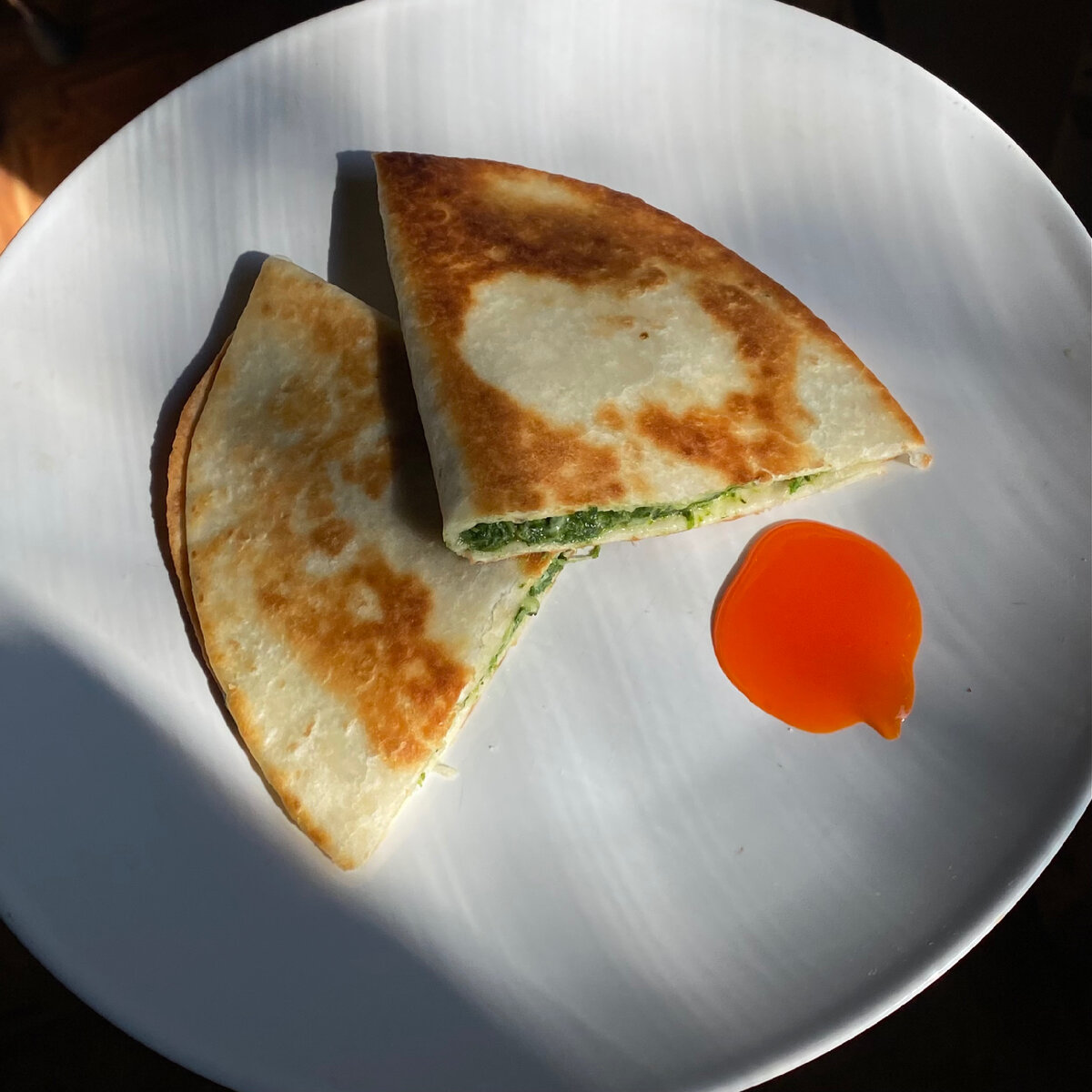 Чтобы приготовить нечто похожее на завтрак, нам потребуется: Действия: 1) Смешиваем шпинат с сыром в пропорции 1:1 2) Выкладываем смесь на половинку лепешки и складываем пополам 4) Обжариваем на растительном масле до хрустящей корочки ОЧЕНЬ ВКУСНО И ОЧЕНЬ ПРОСТО!