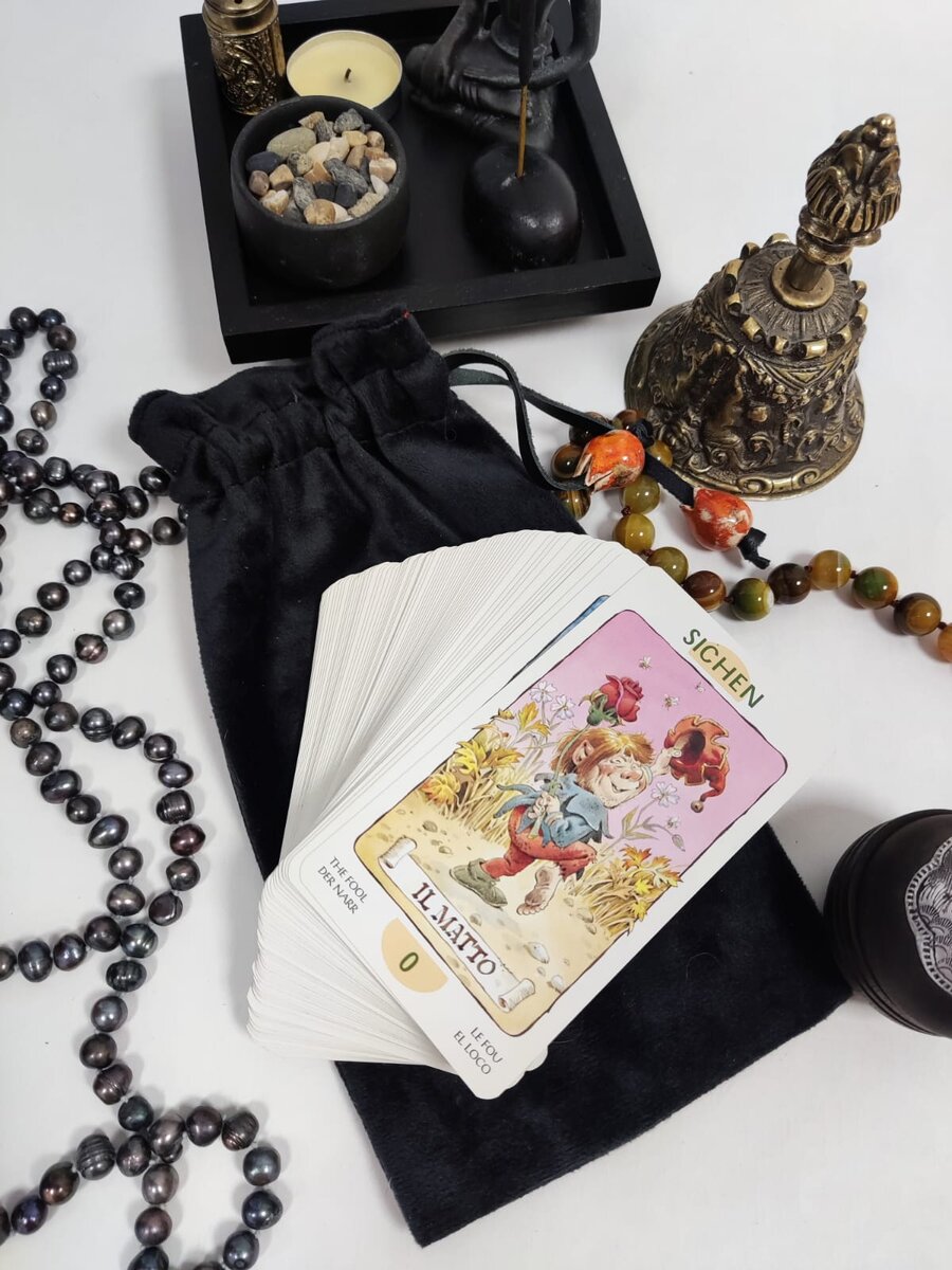 Новая колода - открыв ее заводской домик, поздоровайтесь. Вообще, так принято) Просто мысленно скажите ей "привет". Когда я получила наконец "Гномов", я была так им рада, что полдня пела им дифирамбы - как же я вас ждала, как я вас люблю, гномики мои) Выглядело может и правда глупо, но я очень хотела их. Тогда для меня было дорого, я все откладывала момент, а потом, когда возможность появилась, я была на седьмом небе!)