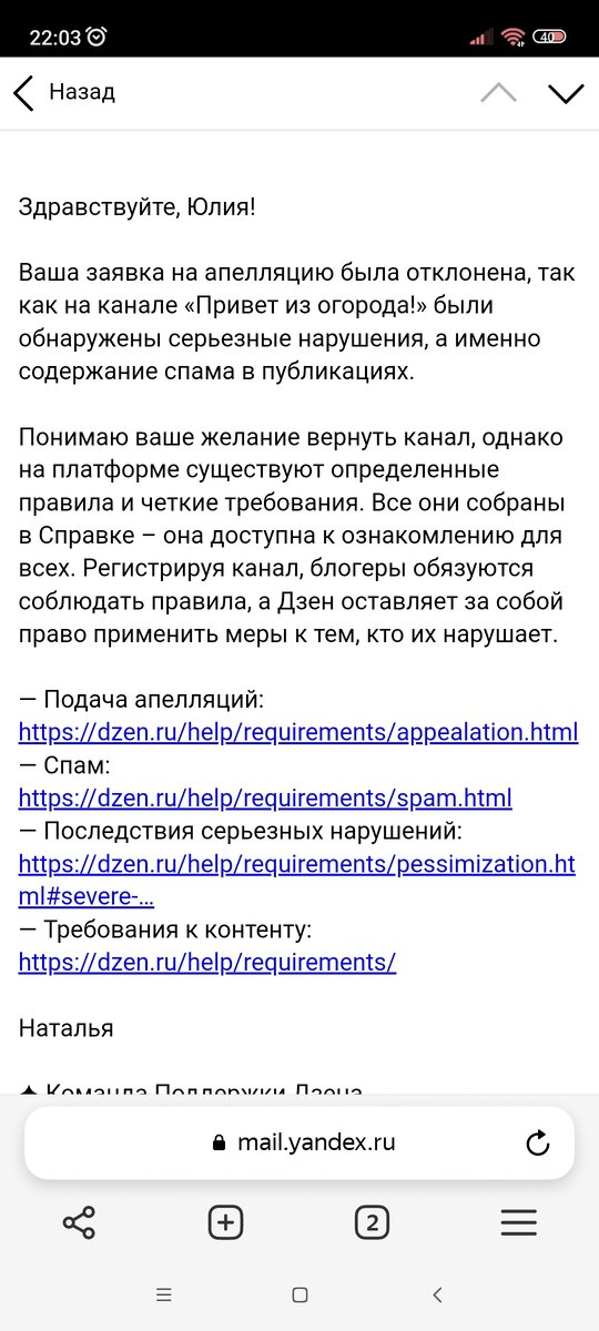 Всем привет! По своей вине потеряла канал. Грустно осознавать,что больше года работы пропало из-за одной глупой ошибки,но приговор от поддержки окончателен. С чего всё началось? В личку в телеграмм ко мне постучались и предложили разместить рекламу на моем канале,они предоставят материалы и инструкции,от меня нужно было только выпустить публикации в определенное время и через двое суток удалить. Конечно изначально были сомнения, поскольку мне было непонятно что я буду рекламировать. А также было несколько звоночков что это делать не нужно,но манил обещанный платеж. Потом мне прислали статьи,сами истории простые и вроде интересные,но оформлены как кликбейт,плюс в конце ещё нужно было вставить ссылку на продолжение,которая ведёт на сайт с кучей спама,но если на него не обращать внимания,то продолжение можно было найти... Статьи то я проверила на оригинальность,показало что текст оригинален,с большими сомнениями,но текст всё таки разместила,деньги получила... Я боялась блокировки,но н