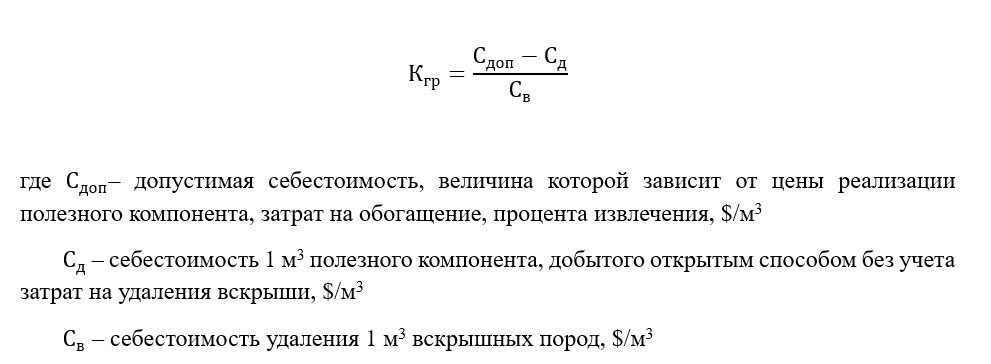 В расширенном варианте формула определения граничного коэффициента вскрыши учитывает значения административных затрат, коммерческие расходы, эксплуатационную разведку и тп.