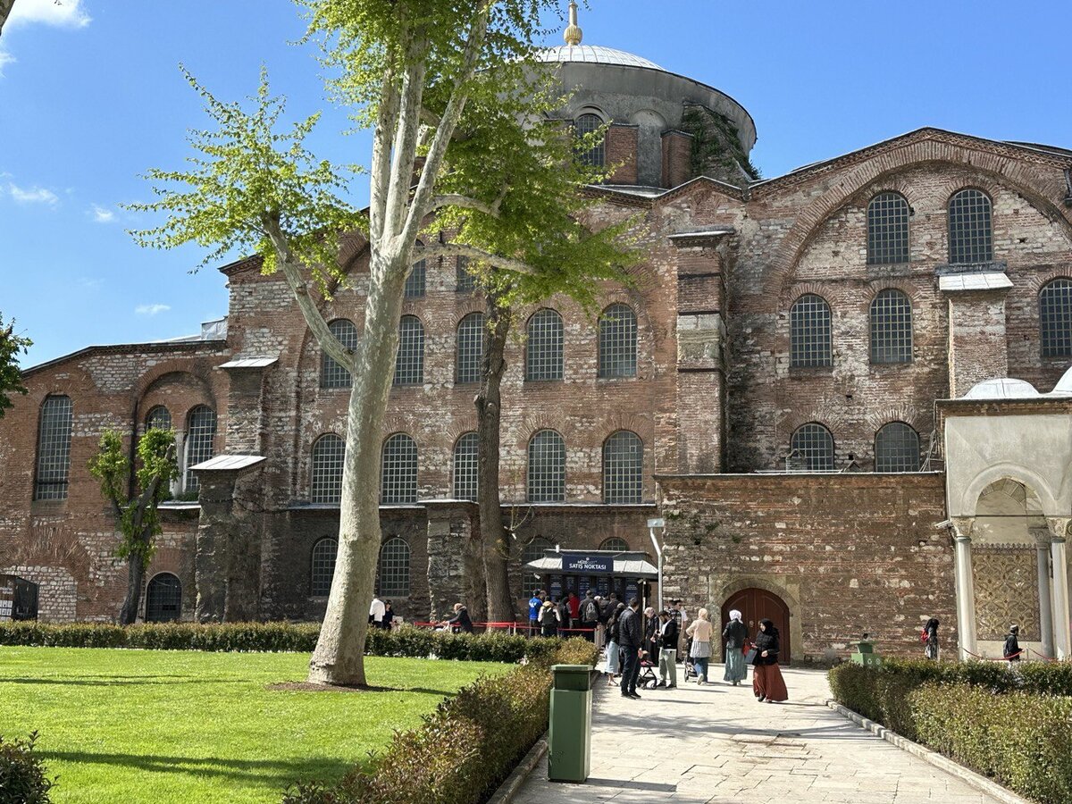 А хитрость состоит вот в чем: когда зайдете, не идите за всеми в общие кассы, сверните налево, к храму Святой Ирины. Там тоже есть кассы, и очереди нет практически!