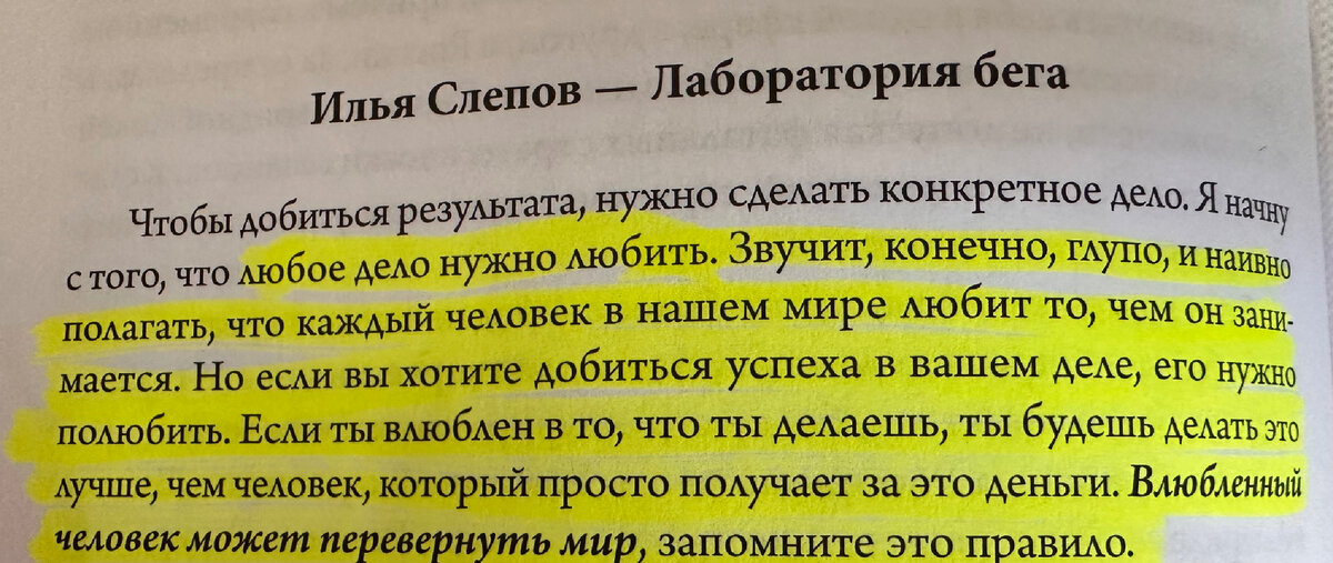 На фото выдержка из книги «100 героев бизнеса». Ничего вроде бы нового, но! Каждый бизнесмен, чья история успеха вошла в это издание, говорит о чем-то своем и при этом ВСЕ, абсолютно все! говорят о том, что свое дело надо любить. И ведь это не только про бизнес, верно? Когда человек обретает свое любимое дело, происходит удивительное преображение. Он становится человеком, который буквально расцветает и находит свое истинное предназначение в этом мире. Вот несколько аспектов того, каким образом человек меняется, когда находит дело, которое по-настоящему его вдохновляет: 1. **Искреннее счастье и энтузиазм:** Когда мы занимаемся делом, которое нам по душе, радость и энтузиазм наполняют нас каждый день. Работа перестает быть обязанностью, и превращается в источник удовольствия и удовлетворения. 2. **Больше мотивации и усердия:** Когда мы занимаемся тем, что любим, наша мотивация и желание преуспеть становятся невероятно сильными. Мы стремимся улучшать свои навыки и искать новые пути ра