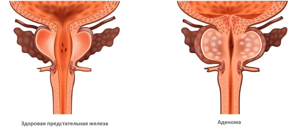 При аденоме простаты происходит увеличение объема предстательной железы, что приводит к механическому сдавливанию мочеиспускательного канала. Это приводит к затруднению оттока мочи из мочевого пузыря и появлению симптомов, связанных с нарушением мочеиспускания: