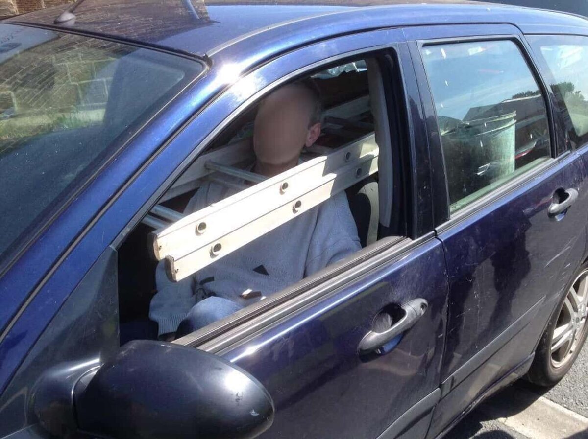 Можно подумать, что по дорогам ездят только автомобили и на зеленый сигнал светофора переходят пешеходы. Но это совсем не так, на дороге можно увидеть все что угодно. Поэтому если хотите поднять себе настроение или просто отвлечься от работы, то приглашаем к просмотру фотографий смешных ситуаций на дороге. Некоторые из них были запечатлены в России, а некоторые за рубежом. Приятного просмотра! Фотографии смешных ситуаций на дороге. 1. Довольно-таки часто на дороге встречаются странные водители. То они одеты в какую-то странную одежду, то едят за рулем, то как-то странно перевозят домашних животных. Ожидая зеленого сигнала светофора один из водителей запечатлели мужчину вот так вот странно перевозившего лестницу. Видимо только так она влезла в его автомобиль. 2. Некоторые разными способами пытаются перевозить крупногабаритные вещи на своем легковом автомобиле. Видимо они принципиально не хотят платить за грузотакси. Они лучше сами помучаются, но довезут сами все необходимые вещи. Даже