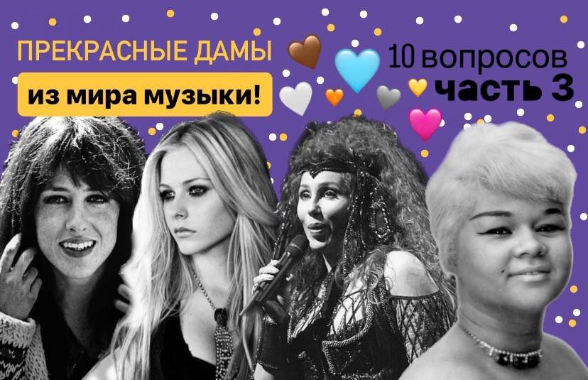 Третья и, наверное, заключительная часть по этой теме! Ни разу ещё пока на просторах Дзена не видел тестов, полностью посвященных замечательным музыкантам женского пола! А жаль! Те девушки, которых я собрал во всех трех частях, являются просто божественными исполнительницами! (Кроме, наверное, Кортни Лав в этой части, ахах). Желаю удачи! Увидимся в следующих тестах!
