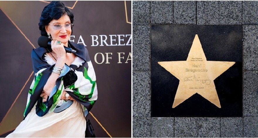 В Sea Breeze Walk of Fame состоялось торжественное открытие именной звезды известной грузинской певицы, народной артистки СССР, легенды советской эстрады Нани Брегвадзе. Отметим, что грузинская исполнительница в последний раз посещала азербайджанскую столицу в прошлом году. Тогда Н.Брегвадзе принимала участие в вечере памяти, посвященном 80-летнему юбилею легендарного азербайджанца, народного артиста СССР Муслима Магомаева. Стоит также отметить, что еще в начале июля текущего года общественности был представлен видеоклип на песню Kvavilebis Kvekana («Страна цветов») Нани Брегвадзе и народного артиста Азербайджана Эмина Агаларова (EMIN). Проект был создан в память об их общем друге – певце, авторе песен, актере, кинорежиссере, народном артисте Грузии Вахтанге Кикабидзе. Не секрет, что у грузинской дивы много поклонников в Азербайджане, и, узнав о том, что на побережье Каспия состоится закладка звезды легендарной исполнительницы, фанаты заблаговременно собрались у «Аллеи звезд», чтобы ув