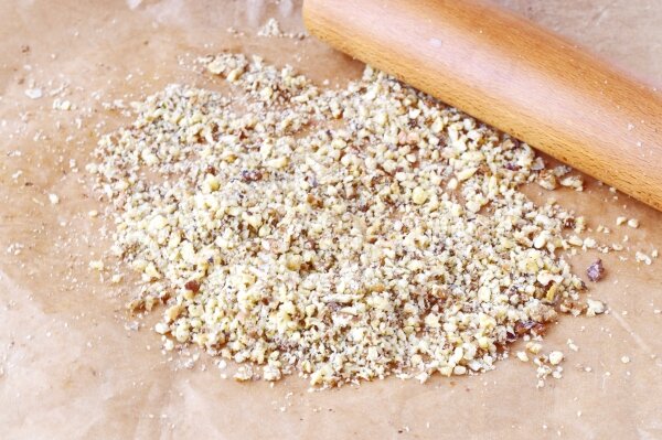Хрустящая, ароматная, ореховая пахлава из теста фило станет вашим любимым десертом, стоит лишь однажды попробовать ее приготовить дома! Ингредиенты Тесто фило - 12 листов Орехи грецкие - 1 стакан Масло сливочное - 150 г Сахар - 2 стакана Вода - 3 стакана Лимон - 0,5 шт. Процесс приготовления Прежде всего нам нужно измельчить орехи. Можно порубить орехи ножом, а можно просто размять их скалкой. Сливочное масло растопим в микроволновой печи буквально за 20 секунд. Тесто фило предварительно размораживаем. Работать будем быстро, поэтому накрываем тесто влажным полотенцем и берем за раз по одному листу теста фило, выкладываем тесто в форму с бортами. Обильно смазываем лист растопленным маслом. Делаем 6 слоев, перемазывая каждый слой маслом ВАЖНО: На шестой слой равномерно распределяем орехи. И снова повторяем процедуру выкладывания листов теста фило и смазывания их сливочным маслом. Теперь очень острым ножом нарезаем тесто на ромбы, квадраты, треугольники, как вам удобнее. Можно каждый кусо