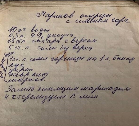 Добрый день дорогие мои! Знаете за что я люблю наш телеграмм канал, а точнее, нашу болталоЧку? Все дело в том, что только там проверенные годами рецепты от подписчиков. Посмотрите на эту запись. Все что написано рукой, то надежное на 100%. Маринованные огурцы с семенами горчицы Маринад На 10 стаканов воды - 0,5 л. 9% уксуса + 15 ст.л. сахара с верхом + 5 ст.л. соли без верха. На дно банки объемом 1 л. 1 ст.л. семян горчицы + лук + укроп + лавровый лист + морковь. Залить кипящим маринадом, стерилизовать 15 минут. Все готово! Пробуйте, пишите свои комментарии и присоединяйтесь к нам. 🌸🌸🌸🌸🌸 ТЕЛЕГРАММ КАНАЛЫ "ВДАЛИ ОТ ГОРОДА" ➡️Сад/Огород ➡️ Подсобное хозяйство ➡️ Наша болталоЧка 🌸🌸🌸🌸🌸