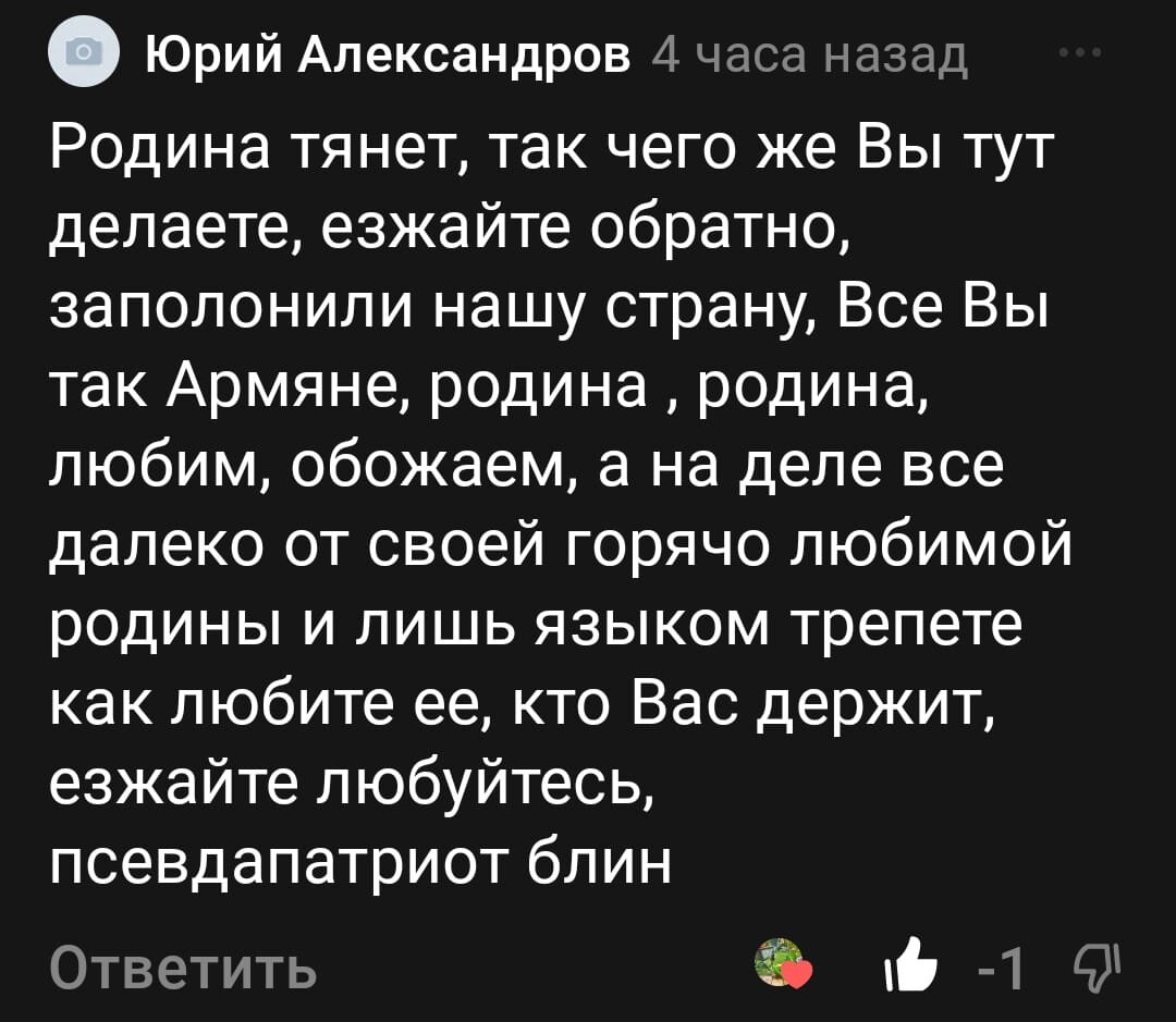 Живите дружно и мирно. И на последок хотел бы узнать, кто против того что я живу в России, или против того, что Россияне живут в Армении? Всем хороших дней и удачи во всем.