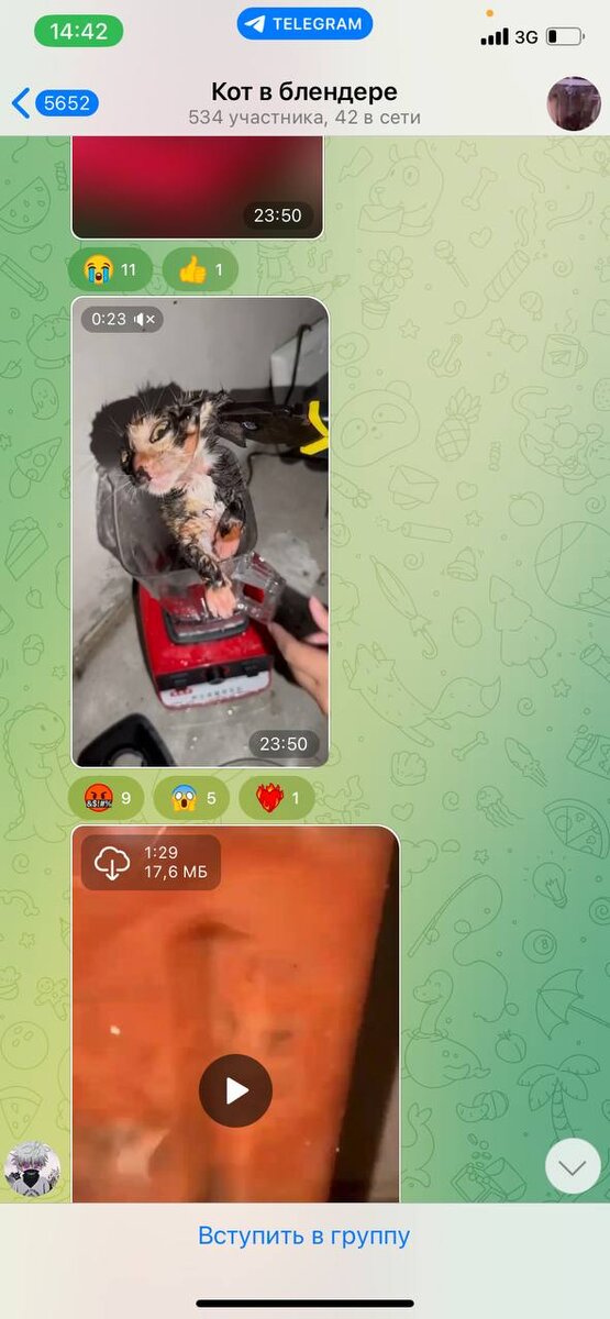 Люди, это полный пи$$$ц! Некий у#л#док, зовущий себя димас выставляет у себя в телеграмм - канале жутчайшие, садистские сцены уб###тв животных!!!! Котенка на видео мр@зь живьем перекручивает в блендере, затем запекает в духовке, крошечного щенка уб##ает молотком по голове, малюсенькой беззащитной обезьянке выж#гает глаза и отрезает мышонку то, что ниже пояса, привязав его к доске. Далее г0вно-автор обещает выставить еще несколько подобных ужасов. С#к@, до каких пор уб##дки будут оставаться безнаказанными? Кто-то уже пишет, мол, это не он. Да плевать, нормальный человек не будет глумиться над животными даже распространяя подобное, и где гарантия, что чмо, больное на всю голову и выставляющее такие ролики не повторит того, что в них происходит? Искать и сажать падлу! Нужны массовые заявления в полицию, прокуратуру и во все возможные инстанции ❗️❗️❗️ Максимальный репост по всем соцсетям!!! ❗️❗️❗️ Вот ссылка на гниду https://t.me/kotblendere