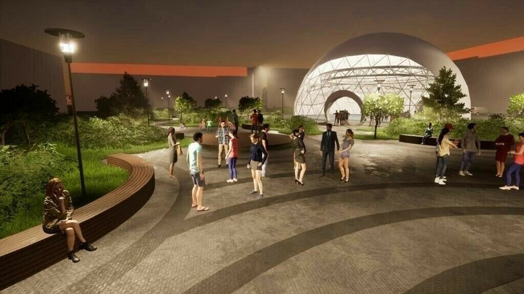 Открытие купола запланировано на 23 августа. В прилегающем парке будет расположено 12 арт-объектов, включая музыкальные инструменты.