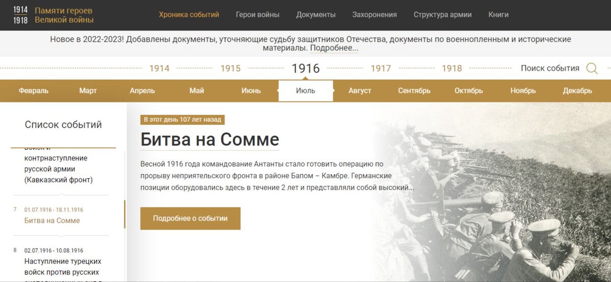 На замечательном Интернет-портале «Памяти героев Великой войны 1914 – 1918 годов» gwar.mil.ru размещено более 2,5 миллионов персональных записей из «Картотеки Бюро по учету потерь на фронтах Первой мировой войны 1914–1918 гг.». Собственно, по этой войне этот портал – единственная полнокровная информационная онлайн-база, которой постоянно пользуются исследователи.