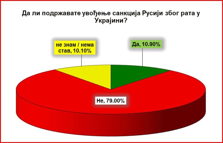 На вопрос «Считаете ли вы, что практика закрытия и запрета российских СМИ должна применяться и в Сербии, как это делается на Западе?», 83,9% выступили против такой меры, 7,8% ответили утвердительно, а 8,3% воздержались.