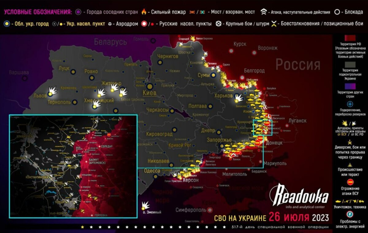 Сватово-Кременное направление: В окрестностях Карамзиновки российская армия взяла под контроль Надия. Также под Кременной продолжаются бои, российские бойцы продвигаются в Серебрянском лесничестве. Бахмутское (Артемовское) направление: Российские бойцы контратаковали в районе Орехово-Васильевки и Красного. У Клещеевки продолжаются ожесточенные бои, село под российским контролем. Запорожское направление: ВСУ активно атакуют в районе Работино, с большим количеством бронетехники, но без успеха. В районе Времьевского выступа боевики сильно давят на российские позиции в Старомайорском, а также идут бои у Урожайного. Российские «Ланцеты» продолжают утилизировать «хваленую» западную технику. Под Северском дрон ВС РФ успешно поразил польскую САУ Krab. Ранее Readovka67 писала : об ужасах нацизма глава смоленского СК рассказал в эфире федерального медиахолдинга.