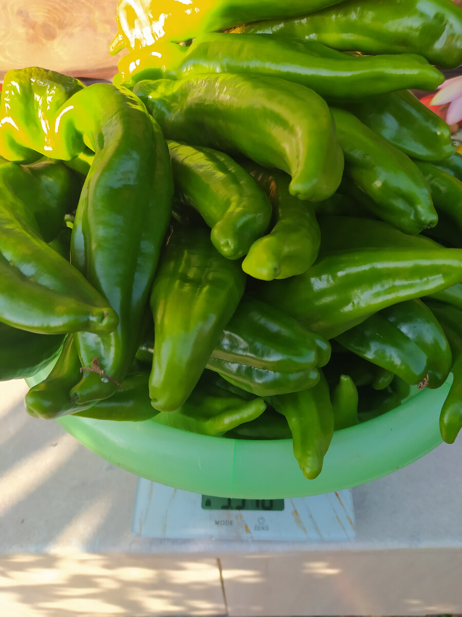 Перцевая лихорадка полностью завладела мною! Собираю урожай и не могу и не хочу останавливаться! Утром частично сняла перец Палермо. У меня в теплице три куста: красный, оранжевый и шоколадный. Все три мои многострадальные спаленные жарой до скелета подопытные.))) Не устают меня удивлять! Даже страшно представить, какой был бы урожай, если бы я их чуть не загубила! Рассказываю по порядку. В этом году я каким-то чудесным образом прикупила несколько пачек очень дорогих семян в компании Сады России. Палермо был в их числе. Когда семена были уже у меня в руках и голова подостыла, я даже немного испугалась содеянного! Пути назад не было, посеяла! И вот он - первый урожай. Вот так выглядит сейчас его куст. Плотно обвешан красивыми плотными перцами. Думаю, что стенки, как в кубовидных я не увижу, но миллиметра четыре точно будет. Снимаю в технической спелости, т.к. хочу успеть получить вторую волну урожая. Поэтому резать и пробовать буду по мере созревания. На фото частичный урожай с одног