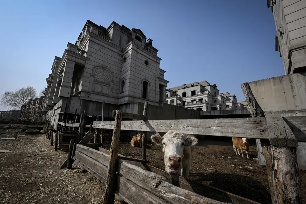 По предназначенным для дорогих машин улицам гуляют коровы и другие животные, а на газонах между зданиями появились огороды. Внутри дома тоже тоже выглядят постапокалиптично, словно кадры из сериала Last of us — стены и интерьеры так сильно обветшали, что уже мало что напоминает о элитной недвижимости для китайских нуворишей.