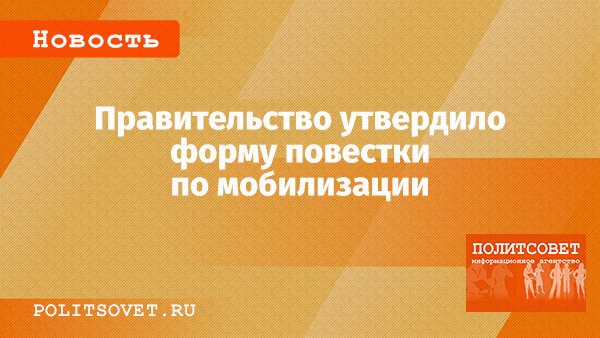 Правительство РФ утвердило единую форму повестки, которую военкоматы должны рассылать при мобилизации. Постановление правительства опубликовано на портале правовой информации. Помимо формы повестки в нем содержится форма расписки о ее получении, а также форма извещения работодателя о призыве сотрудника по мобилизации.