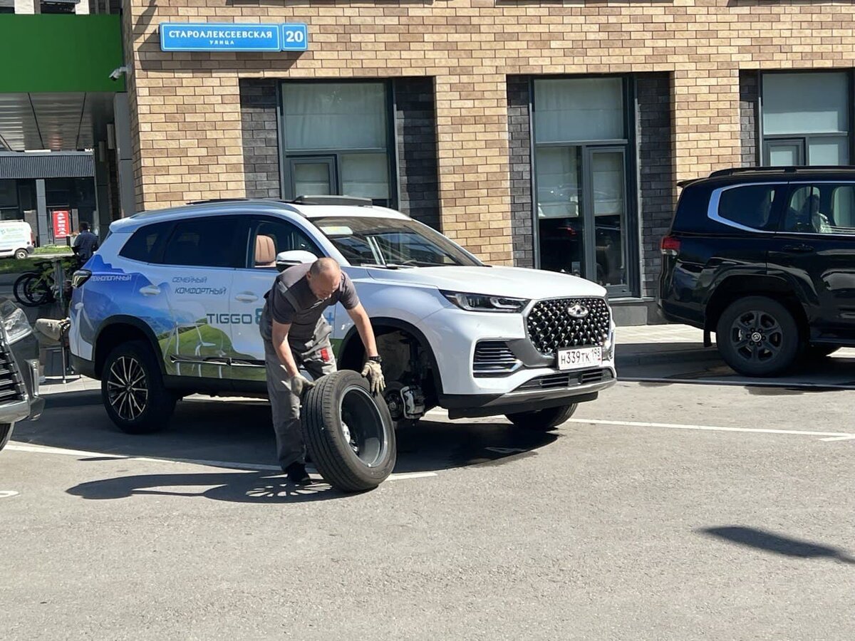 Покорение Дона у нас началось с приключений, на двух автомобилях мы должны были отправиться от гостиницы из Москвы, но тут на парковке я увидел, что у коня подбита подкова Chery спущено колесо, причину искать долго не пришлось, я сразу увидел саморез, запаски в машине не оказалась, поэтому товарищ вызвал выездной шиномонтаж, в итоге за ремонт прокола жгутом взяли 6 тысяч.