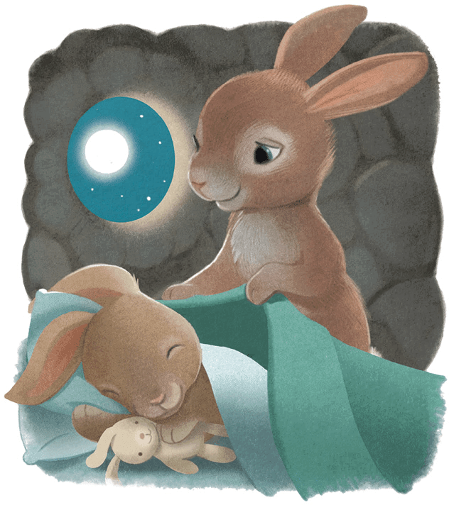 Мама-крольчиха подоткнула кролику одеяло и пожелала спокойной ночи. И тебе, [зевок] [имя], спокойной ночи, ведь ты тоже совсем утомился.