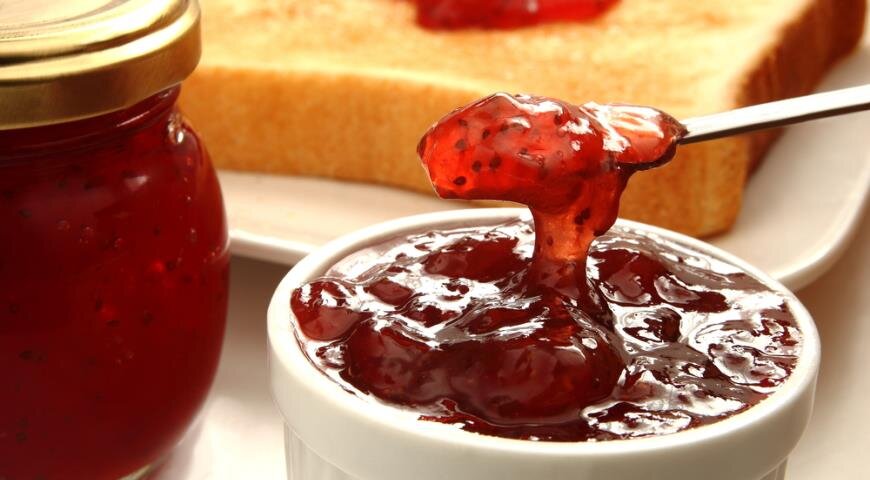 Ягоды для варенья должны быть одинаковой спелости и размера. Ягоды для варенья собирают в сухую солнечную погоду, лучше днем, а не утром или вечером. Их сортируют по степени зрелости: мелкие, поврежденные, уродливой формы отбраковывают. Моют, несколько раз меняя воду. Варят варенье в тазу или невысокой кастрюле не более 2 кг одновременно, сначала на сильном огне, а когда станет выделяться пена, огонь убавляют.Периодически снимают аккуратно пену. Когда варенье уварится, берут пробу. Для этого таз снимают с огня, берут в ложку сироп, дают ему немного остыть и капают на чистое блюдечко. Если капля сиропа не расплывается, а держится «пуговкой», то варенье готово. Определить готовность варенья можно иначе - техническим термометром: при температуре 105-106° варенье готово.