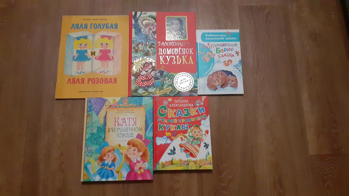 Сегодня хочу расказать об очень хорошей детской писательнице. Татьяна Александрова для меня воплощение именно добрых детских книг. В детстве как-то не слишком часто я читала ее книги. Но вот дочерью прочитали много! Итак, моя детская книжка: Детская книжка про игрушки. В тоненькой книжке несколько коротких рассказов. Книга с замечательными иллюстрациями. Посмотрите сами: Книжка о дружбе, о том, как важно дружить со всеми, помогать друзьям в беде. В двух куколках некоторые девочки, к сожалению, могут узнать себя. Но несмотря на некоторые недостатки главных героинь, книжка добрая. В ней больше доброты, чем поучительности. Еще вот такая замечательная книжка у нас есть: Ну кто ж Кузьку-то не знает? Это же любимый мультик детства! Я, кстати, вообще кукольные мультики в детстве больше рисованных почему-то любила. Книжку про домовенка Кузьку я читала, когда училась в первом классе. Не эту. Брала в детской библиотеке. А дочери уже купили. Качество книги - на высоте. Глянцевая бумага. Очен