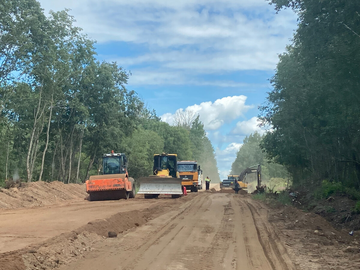 Увидели кучу разнообразной техники, много людей. Смотрели, как валят деревья по обочинам. Папа удивлялся, что подняли дорогу практически на 2 метра в высоту.
