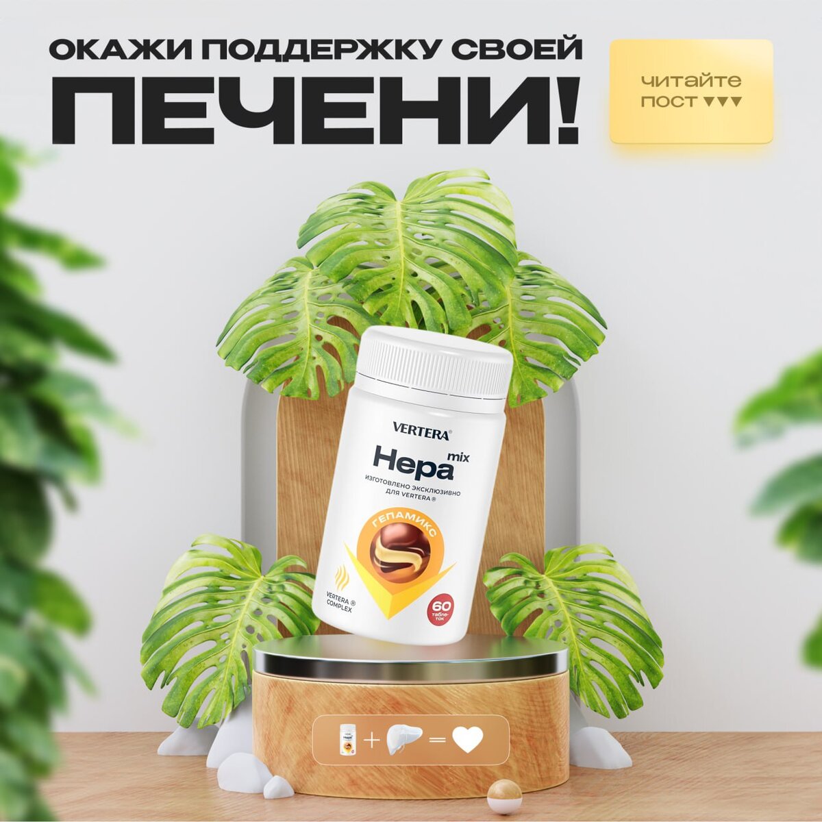Окажите поддержку своей печени! ♨️ Всем важна поддержка, в первую очередь самому себе, а если точнее, то нашему организму. Неправильное и нерегулярное питание, вредные привычки, стресс... Печень – своеобразный природный «фильтр» организма, который часто вынужден работать в экстремальных условиях, защищая нас от наших же действий. Но сложно постоянно давать что-то, не получая ничего взамен. Компания VERTERA предлагает позаботиться о печени. Для этого компания VERTERA разработала фитокомплекс Hepamix, который способствует: - Улучшению процессов желчеобразования и желчевыведения; - Усвоению необходимых питательных веществ организмом; - Активации защитных реакций иммунитета; - Синтезу комплекса веществ-биорегуляторов; Фитокомплекс Hepamix принимается по одной таблетке во время еды 1-3 раза в день. *Перед применением в периоды беременности и грудного вскармливания следует проконсультироваться с лечащим врачом. Приобретайте продукцию на официальном сайте по ссылке со скидкой 30% после рег