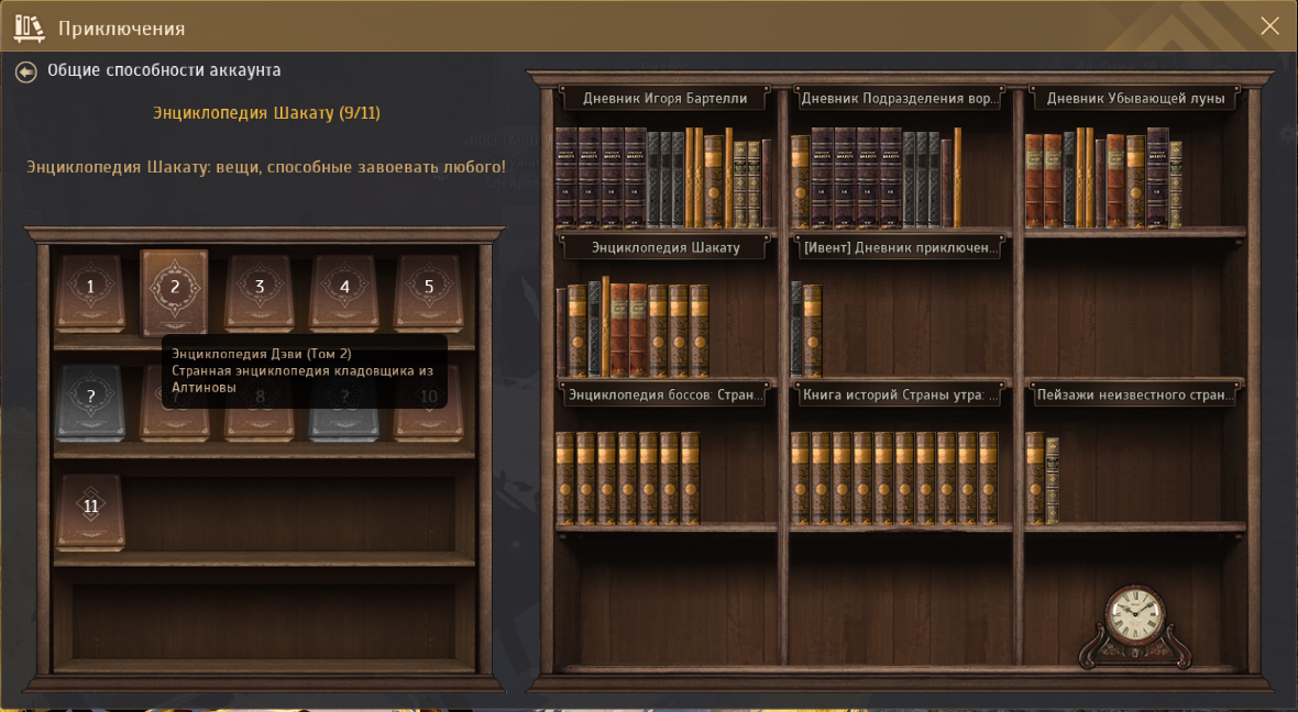 Найти дневник: Ескейп - Путешествие - Дневники приключений - Энциклопедия Шакату. Задание 1. Собрать стулья (7 видов). Выполнение: Покупаем на аукционе или у торговцев мебелью в больших городах готовые или крафтим самостоятельно в Мебельном цеху 7 разных стульев. Кроме тех, которые для особняка. Задание 2. Собрать люстры (3 вида). Выполнение: Покупаем в Алтинове Мебельный цех и крафтим 3 канделябра Или покупаем на аукционе. Задание 3. Собрать кровати (3 вида). Выполнение: Либо крафтим в Мебельных цехах по разным городам, либо покупаем на аукционе, либо у торговцев мебелью 3 разных кровати. Я сдавал эти Задание 4. Собрать чучела (Мастер)(3 вида). Выполнение: Покупаем на аукционе 3 чучела такого типа: И показываем их Дэви. Я сдавал эти Связанные темы: Дневник Дэви том 1 Дневник Дэви том 3