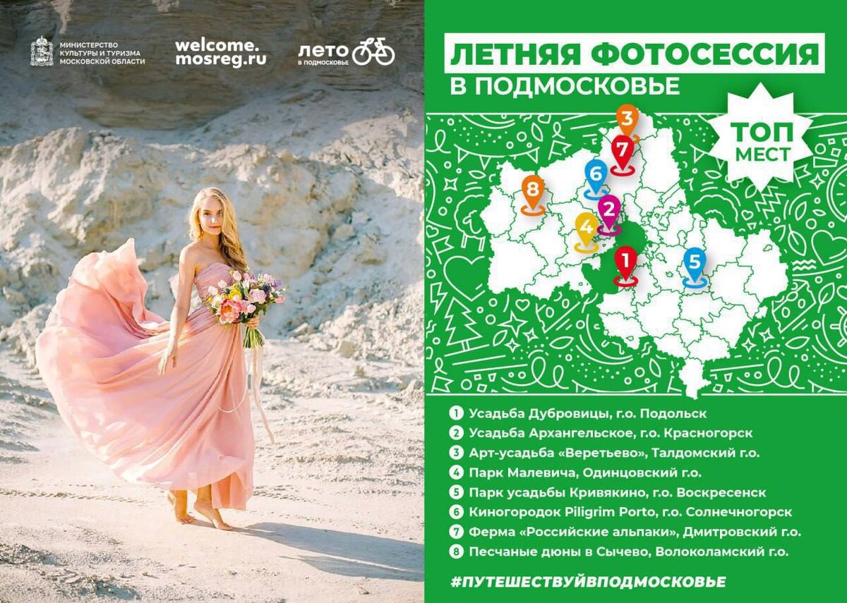 Буйство красок, теплые солнечные лучи и такая особенная атмосфера. Лето — время прекрасных моментов, которые хочется запечатлеть в памяти. Лучший способ сохранить воспоминания об этой поре — сделать красивые фото. Для этого необязательно ехать далеко или приобретать дорогой реквизит. В Подмосковье найдутся фотолокации на любой вкус и для самых разных образов: от дремучих лесов и живописных рек до песчаных дюн, от старинных церквей и усадеб и до авангардных сооружений и необычных парков. Расскажем о лучших из них.