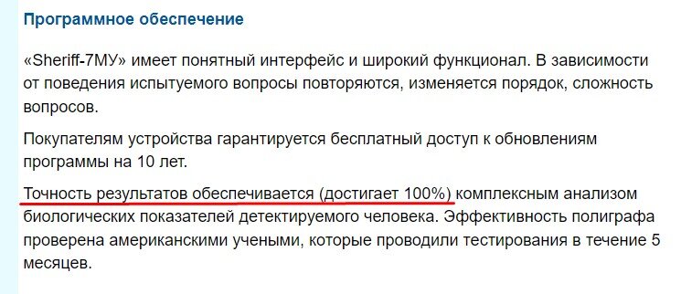 А уж как продавцы полиграфов любят расхваливать свои аппараты! Гарантируют на своих сайтах чуть ли не 100% вероятность распознавания лжи.