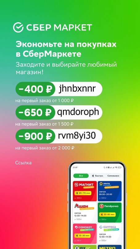 НОВЫЕ ПРОМОКОДЫ В СБЕРМАРКЕТ