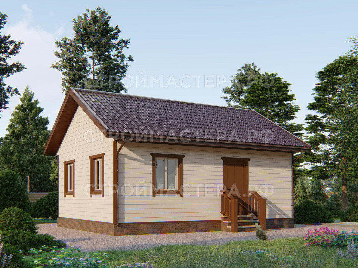 Каркасно-щитовой дом от строительной компании "СтройМастер". Площадь застройки: 6 x 8 м, Общая площадь: 45 м2, стоимость: от 783 000 руб. Комплектация: под ключ.