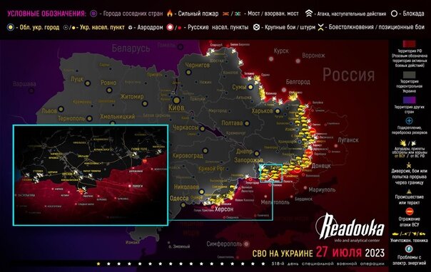 Продолжаем следить за происходящем на фронтах СВО. За время, прошедшее с прошлого обзора, произошел ряд событий. Вот про них и поговорим 1. Сватово — Кременное направление. На этом направлении наши войска продолжили наступление. Русские войска форсировали реку Жеребец и. По некоторым данным, освободили три населенных пункта. Это н. п. Сергеевка, Надия и Новоегоровку. Официальное подтверждение есть, впрочем, только пока по Сергеевке. Остальные, скорее всего еще либо не зачистили, либо не взяли пока под полный контроль. Всего наши войска сумели продвинуться вглубь территории противника на 7 — 10 км. Сейчас наступление продолжается по направлению к р. Оскол. После выхода на правый берег Оскола можно уже будет двигаться по направлению к Балаклеи и Изюму. 2. Запорожское направление. Укры предприняли новые попытки прорвать наши позиции в Запорожье. Атаковали под Старомайорском, Работино и Урожайным. Хоть какое — то продвижение было только в районе Старомайорского. Врагу удалось войти в посе