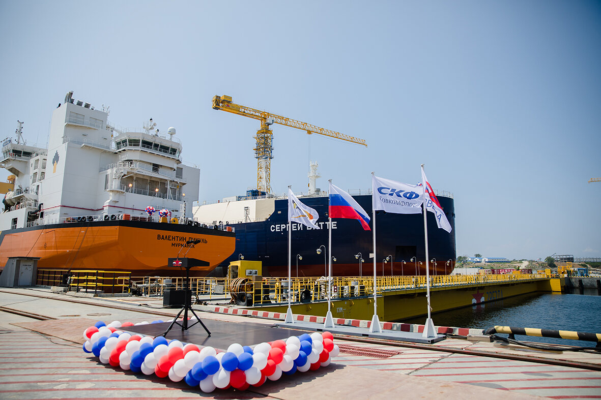 Специалисты судостроительного комплекса «Звезда» провели уникальную операцию по выводу из сухого дока одновременно двух судов: первого танкера-челнока ледового класса ARC6 и танкера-газовоза СПГ класса ARC 7. Торжественная церемония по спуску судов на воду состоялась в присутствии представителей ССК «Звезда», заказчиков и российского морского регистра судоходства. Вся операция длилась около суток: после заполнения чаши дока водой и отведения батопорта (плавучего затвора дока) суда отбуксировали к месту проведения достроечных работ. После их завершения суда пройдут швартовные испытания. Танкер-челнок усиленного ледового класса ARC6 дедвейтом 69 000 тонн строится по заказу АО «Роснефтефлот». Судну присвоено имя «Валентин Пикуль» – в честь советского писателя, автора многочисленных художественных произведений на историческую и военно-морскую тематику. Танкер предназначен для перевозок нефти и способен самостоятельно осуществлять навигацию без ледокольного сопровождения в акваториях север
