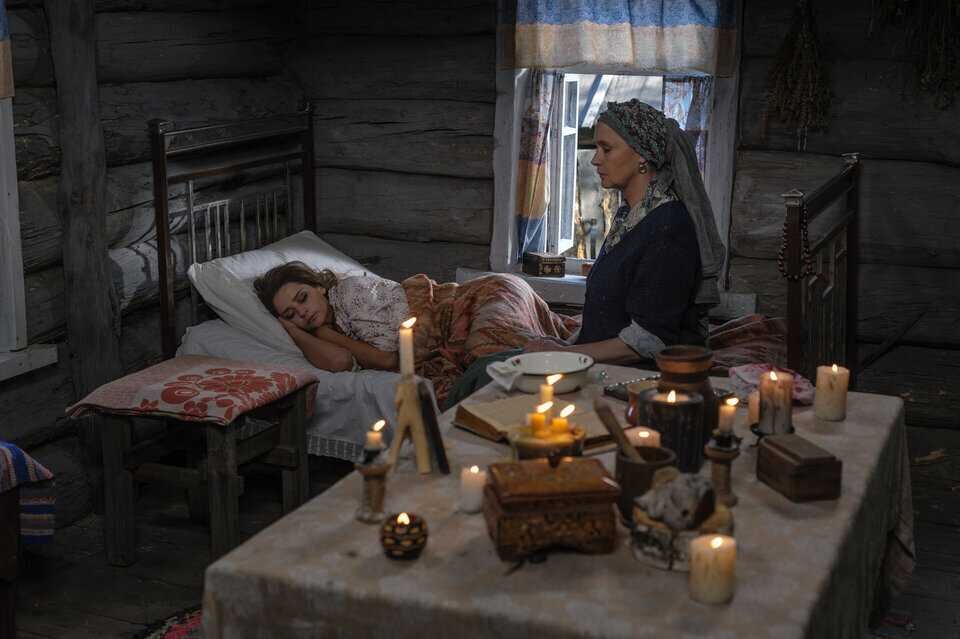 Девушка, точнее то, что с большой натяжкой можно было так назвать, лежала на кровати под покрывалом, положив худые руки поверх него. Большие синие глаза, уже не такие запавшие, но все еще производившие неизгладимо удручающее впечатление, смотрели с удивлением на вошедшего боярина. Искусно затемненные угольком веки под ними, выглядели по настоящему страшно, а впавшие щеки, так же слегка припорошенные золой, буквально кричали о том, что девица находится одной ногой в могиле. На этом фоне тонкий носик Елены выделялся как острие ножа, пробившего лист старого серого пергамента. Картину довершал аккуратный белый платочек, повязанный на волосы – это золотистое богатство Ульяна и Яромира не успели спрятать никак иначе. Аня несколькими минутами ранее унесла Врана из комнаты, надежно укрыв птицу, окутанную столькими легендами, от чужих глаз.