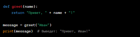 Функции - это основные строительные блоки программы, которые позволяют разделить код на логические блоки и повторно использовать его. В Python функции создаются с помощью ключевого слова def. 1. Создание и вызов функций Создание функции в Python осуществляется с помощью ключевого слова def, за которым следует имя функции и круглые скобки с параметрами. Функция может принимать аргументы и возвращать результат с помощью ключевого слова return. Синтаксис: def имя_функции(параметр1, параметр2, ...):