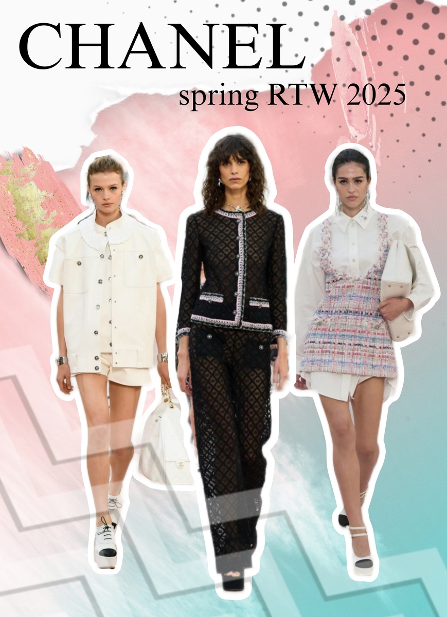 Приветствую друзья! Проведу для вас обзор и разбор показов ведущих домов моды и брендов! Ах, CHANEL.... Пленила коллекция меня, что скрывать. Очень понравились несколько идей. И я даже уже купила себе аналогичный жилет, что будет в обзоре. Но обо всем по порядку. В коллекции преобладают пастельные цвета, много молочного, розового. Без классического черного не обошлось. Ткани и плотные - твид и джинса, так и полупрозрачные шифоновые. Обратите внимание на обувь - контраст, ремешки и платформа. Подробнен про коллекцию: 1. Воздкшная вязка 2. Джинсовая ткань, причем темные цвета тоже Во всех случаях джинс в сосетании с полупрозрачным летящим верхом или как в слайде 4 декор как перышки. 3. Перья в принте и в качестве декора 4. Принт графичная узкая клетка. Слайд 3 и 4 - в сочетании с полоской. 5. Твид 6. Бахрома, в том числе по краю одежды и низу брюк 7. Открытый живот Слайд 1 и 2 - контрастный массивный ремень, талия занижена. 8. Полупрощрачные летящие ткани Слайд 1 и 3 - р